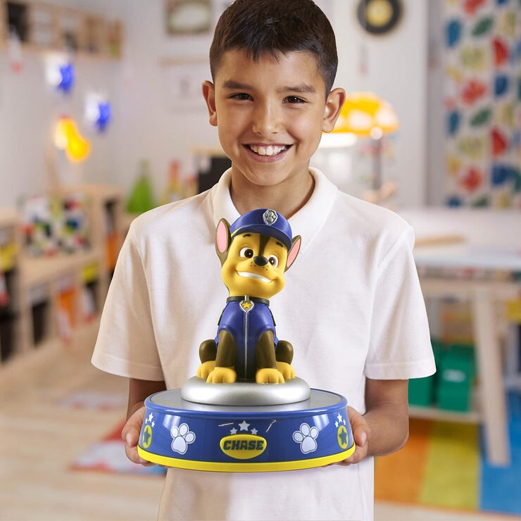 • Paw Patrol Chase plays spoken phrases, while multi-coloured LEDs illuminate the room