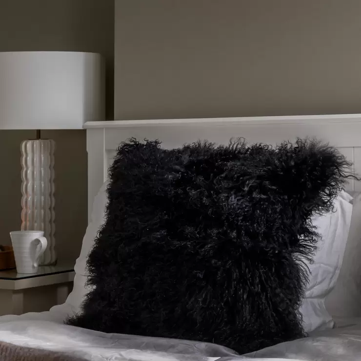 Naturally Sheepskins Mongolian Cushion, 50 x 50 cm in Black