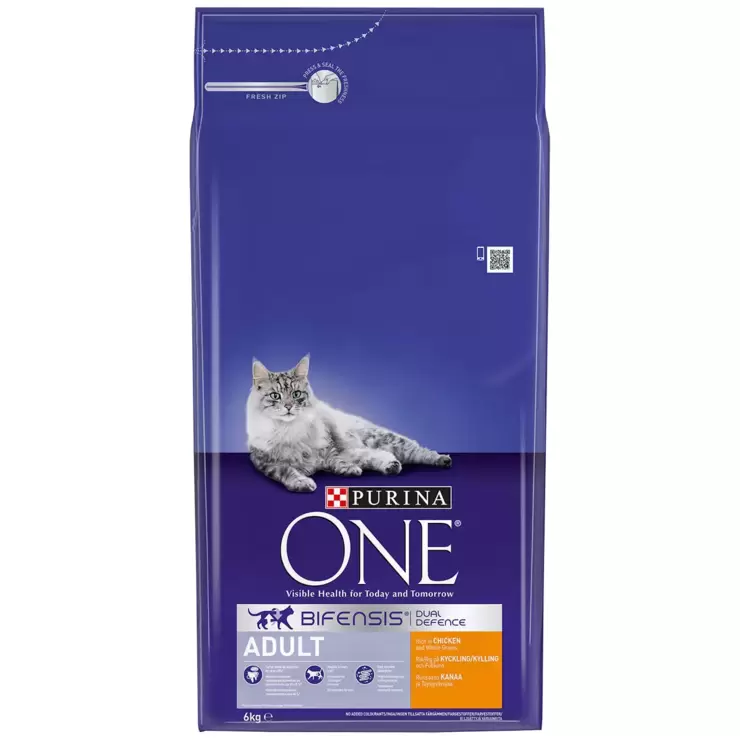 Purina ONE Adult is specifically formulated to meet the complete nutritional needs of Adult cats (aged 1-7 years) who need a complete and balanced diet to help stay in the best of health. PURINA ONE® BIFENSIS® is a unique nutritional formula with beneficial functional bacteria scientifically proven to help support your cat’s natural defences from the inside out, so you can enjoy their visibly great condition knowing they're great on the inside too. Purina ONE with BIFENSIS® formula helps support your cat's healthy immune system today and tomorrow.