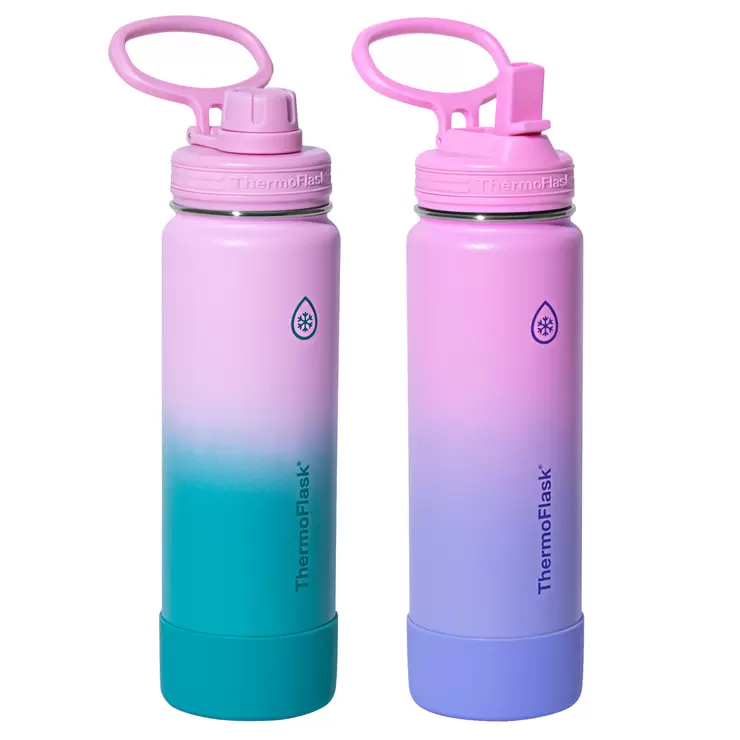 ThermoFlask Stainless Steel 700ml Water Bottle, 2 Pack in Teal & Pink