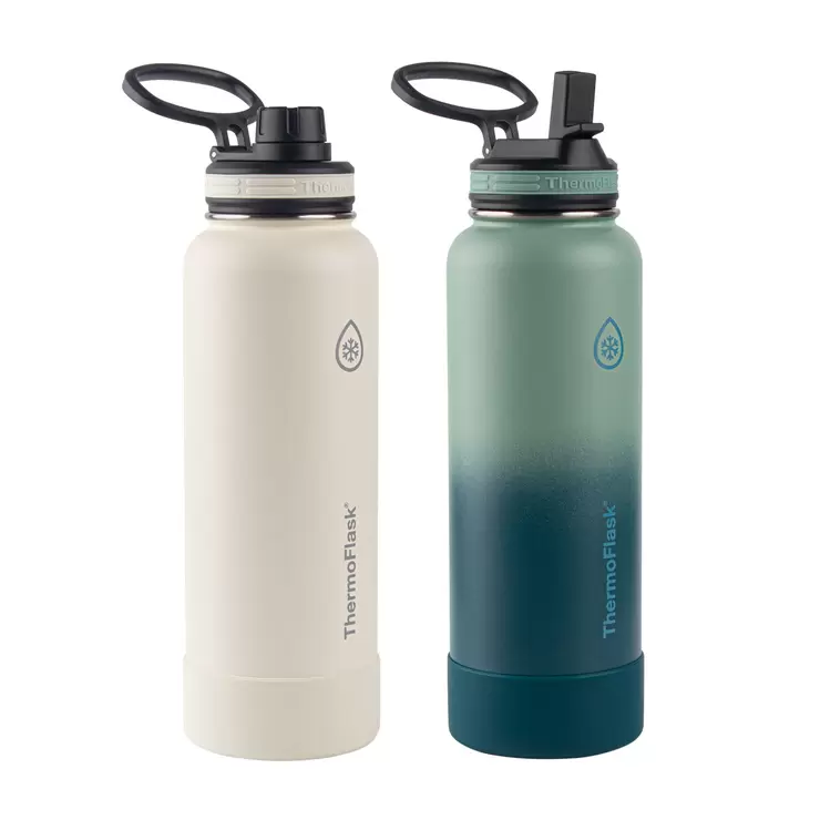 The ThermoFlask® Insulated Stainless Steel 40oz. Two Bottle Pack with Spout Lids makes it easy to sip without slowing down. Keep your beverages ice cold all day in the vacuum insulated stainless-steel bottle. The double-wall bottles prevent outside temperatures from affecting the inside beverage temperature, so your drink stays just the way you like it - all day long. The 40oz size is great for a big thirst, minimal refills, or to share. Whether you’re headed to yoga, the gym, or just out and about, this bottle will keep you refreshed and hydrated all day long.