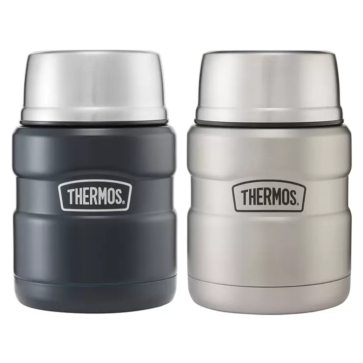 The iconic Thermos food flask range incorporates sleek, industrial styling, blending technology with heritage. Available in a variety of classic colours to suit all tastes, our 470ml food flask is ideal for daily food prep for people on the go. Created with the Thermos® quality and performance you can rely on . This flask is a timeless classic.