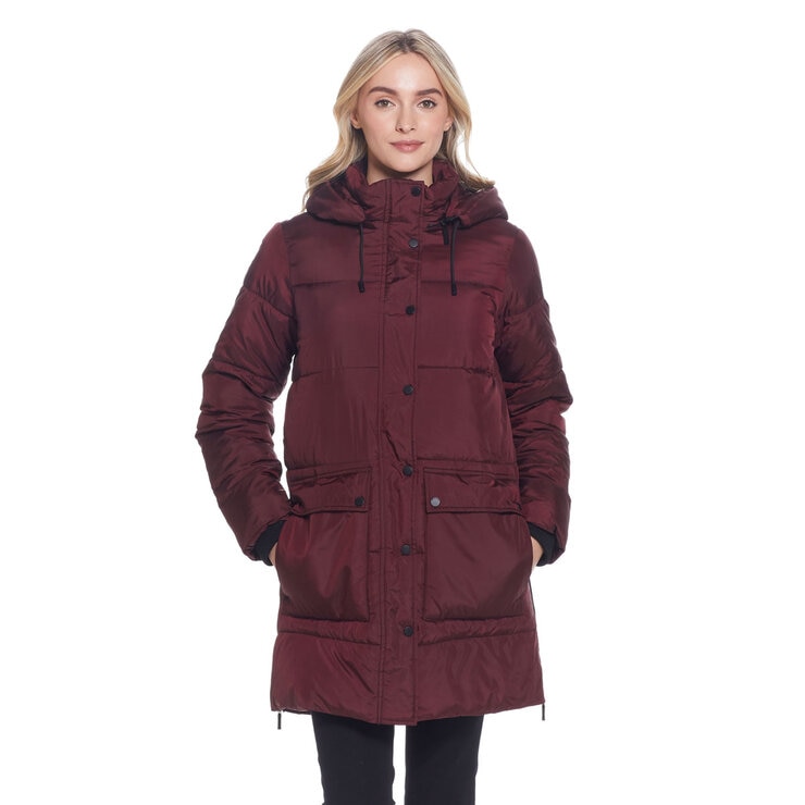 Weatherproof's Hooded Heavyweight Walker is the perfect go to piece for cold and blustery days. This puffer coat will keep you comfortably warm with it's insulative faux down and storm cuff sleeves. This is the perfect verstatile piece to layer over any outfit for added protection while maintaining style and comfort.