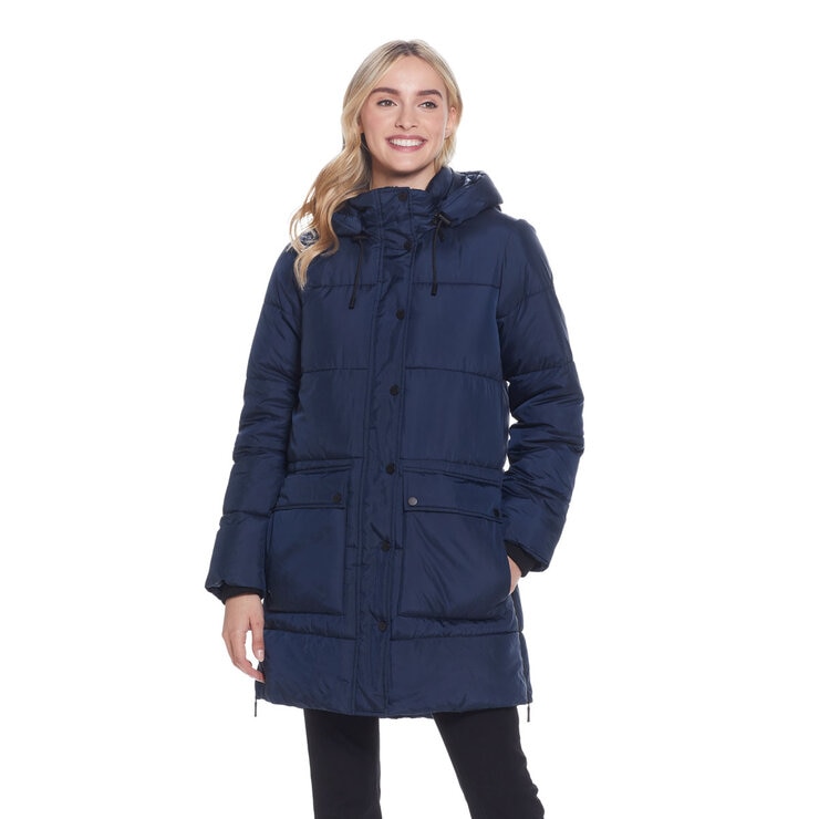 Weatherproof's Hooded Heavyweight Walker is the perfect go to piece for cold and blustery days. This puffer coat will keep you comfortably warm with it's insulative faux down and storm cuff sleeves. This is the perfect verstatile piece to layer over any outfit for added protection while maintaining style and comfort.