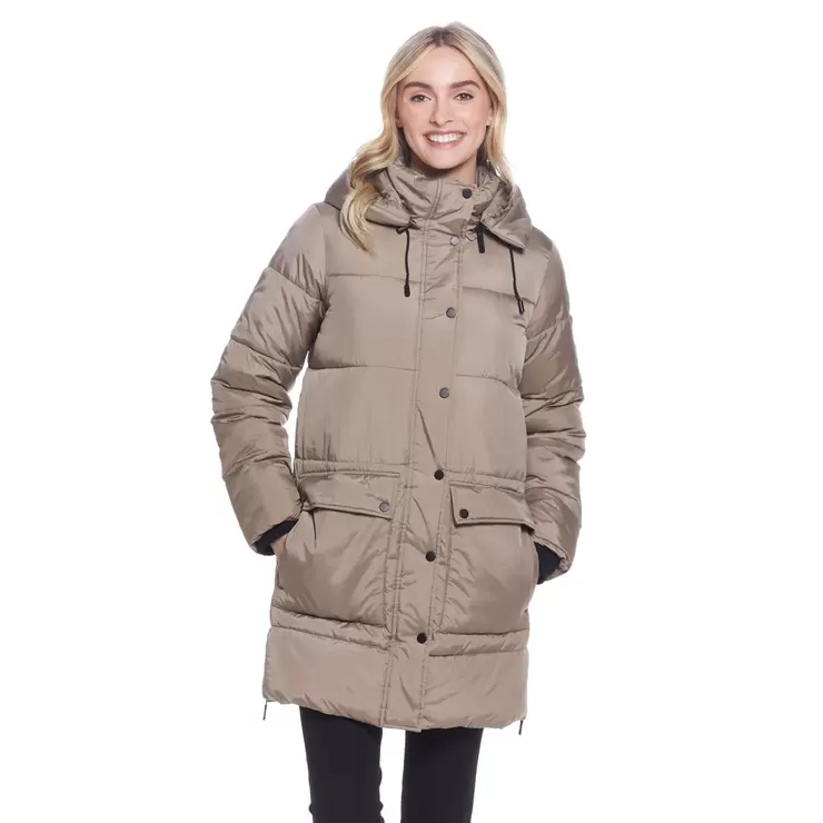 Weatherproof's Hooded Heavyweight Walker is the perfect go to piece for cold and blustery days. This puffer coat will keep you comfortably warm with it's insulative faux down and storm cuff sleeves. This is the perfect verstatile piece to layer over any outfit for added protection while maintaining style and comfort.